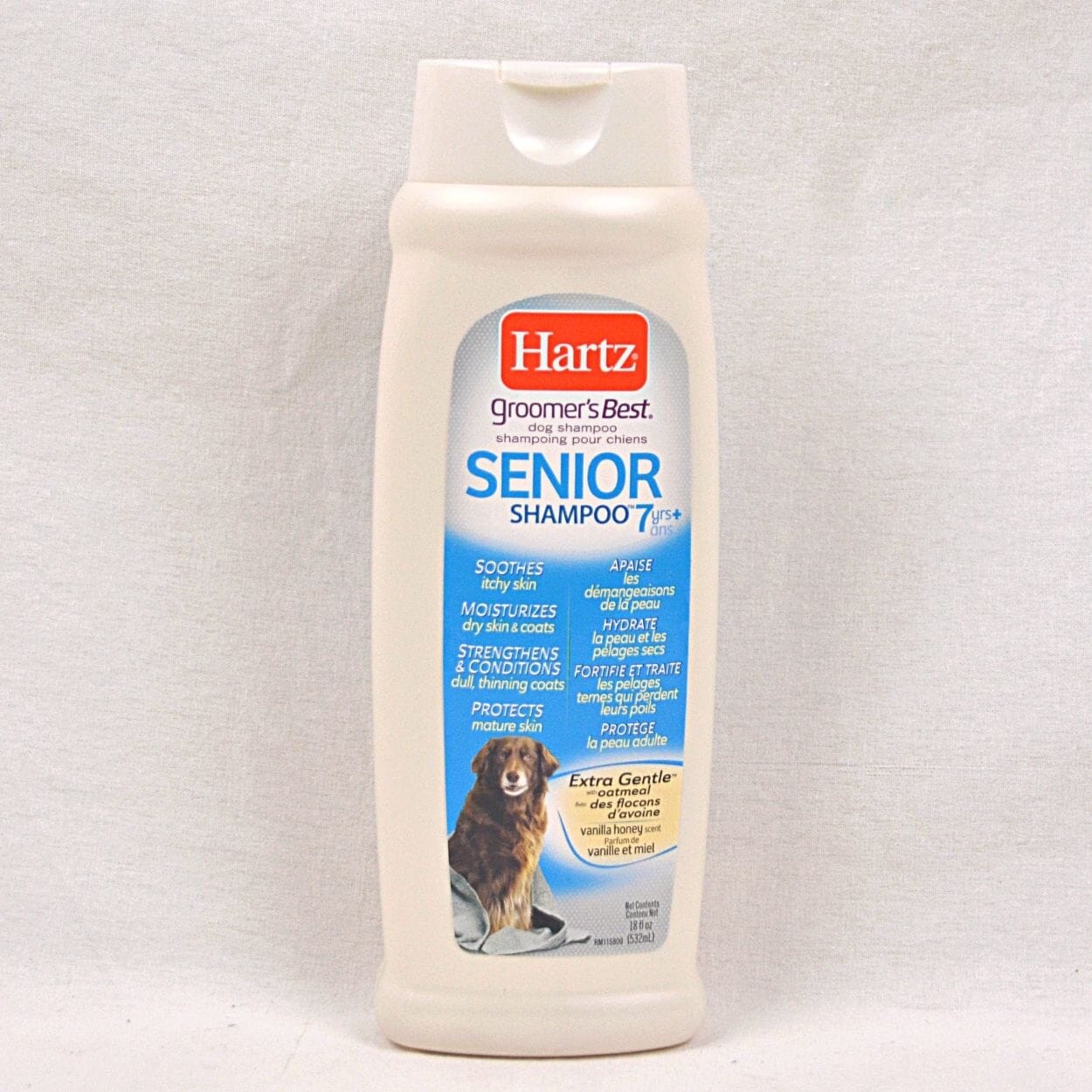 Product Description Hartz Groomer’s Best Senior Dog Shampoo addresses the special skin and coat conditions dogs develop as they age. This gentle formula is enriched with milk protein and omega-6 fatty acids to nourish mature, dry skin. A touch of oatmeal soothes itchy, irritated skin with every bath. Vitamin E...